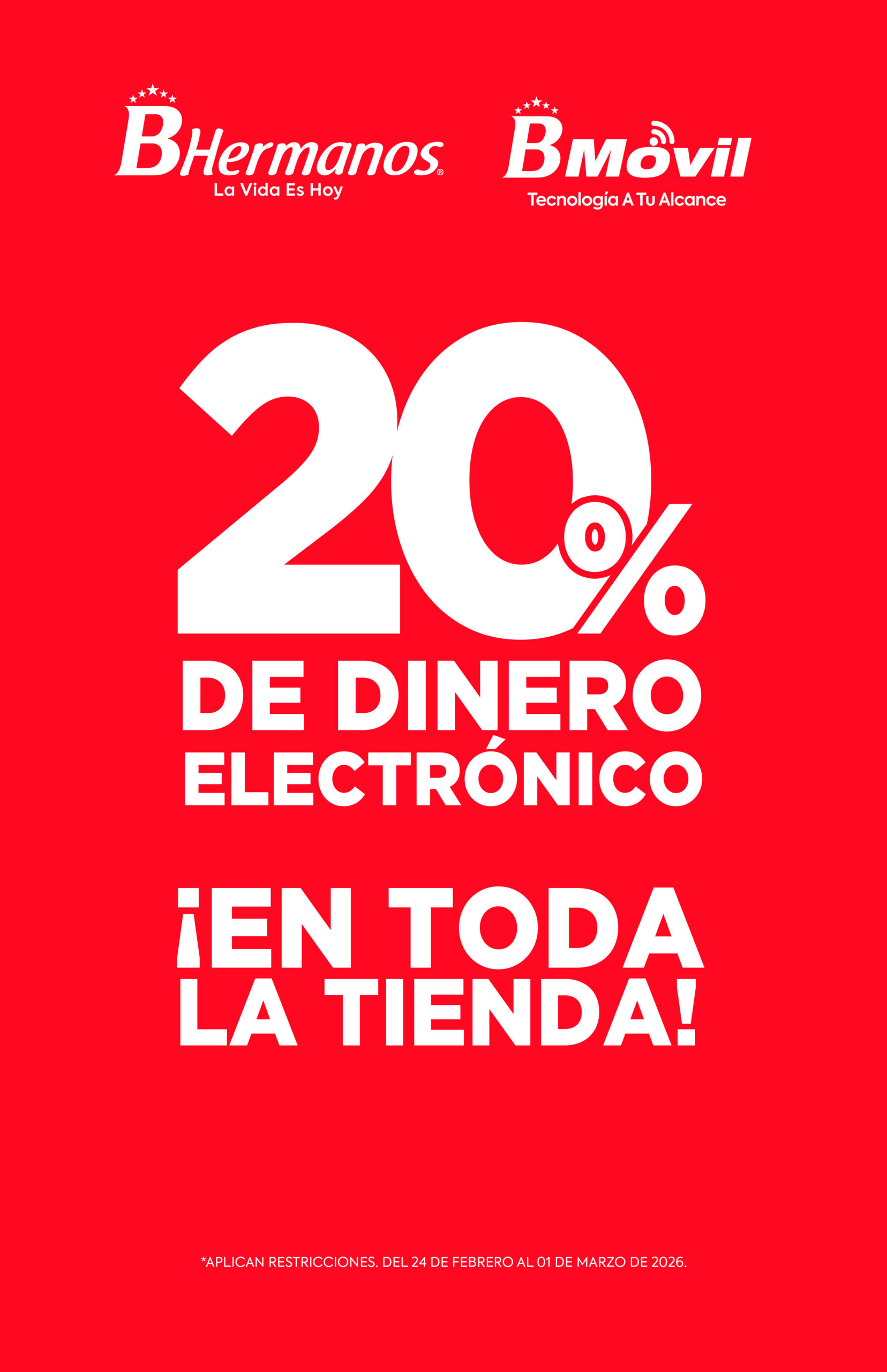 ¡RECIBE 20% DE DINERO ELECTRÓNICO EN TODA LA TIENDA!